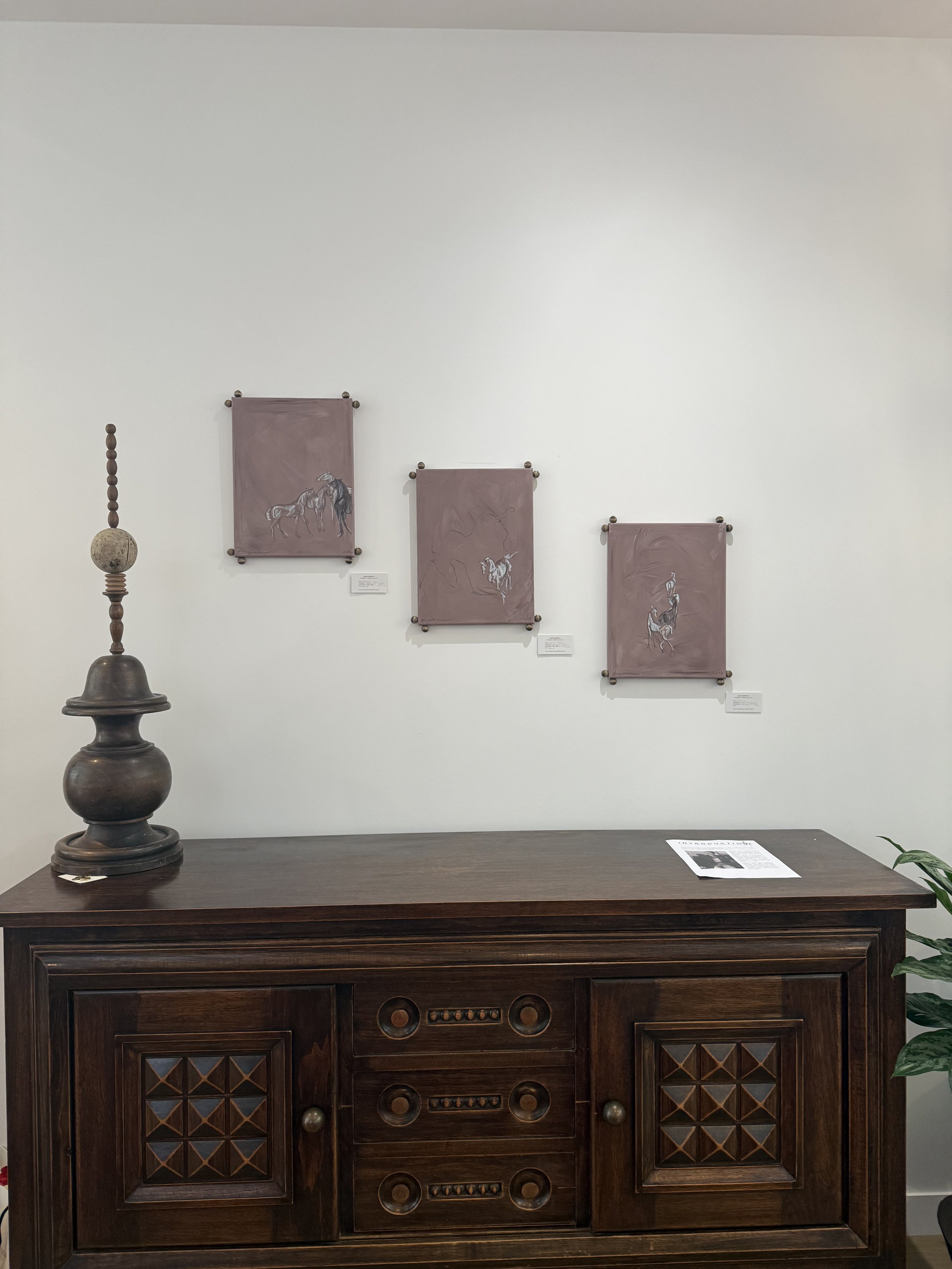 Quelques-unes de mes premières œuvres sur le cheval sont actuellement accrochées dans ce café situé à deux pas du Jardin du Luxembourg.