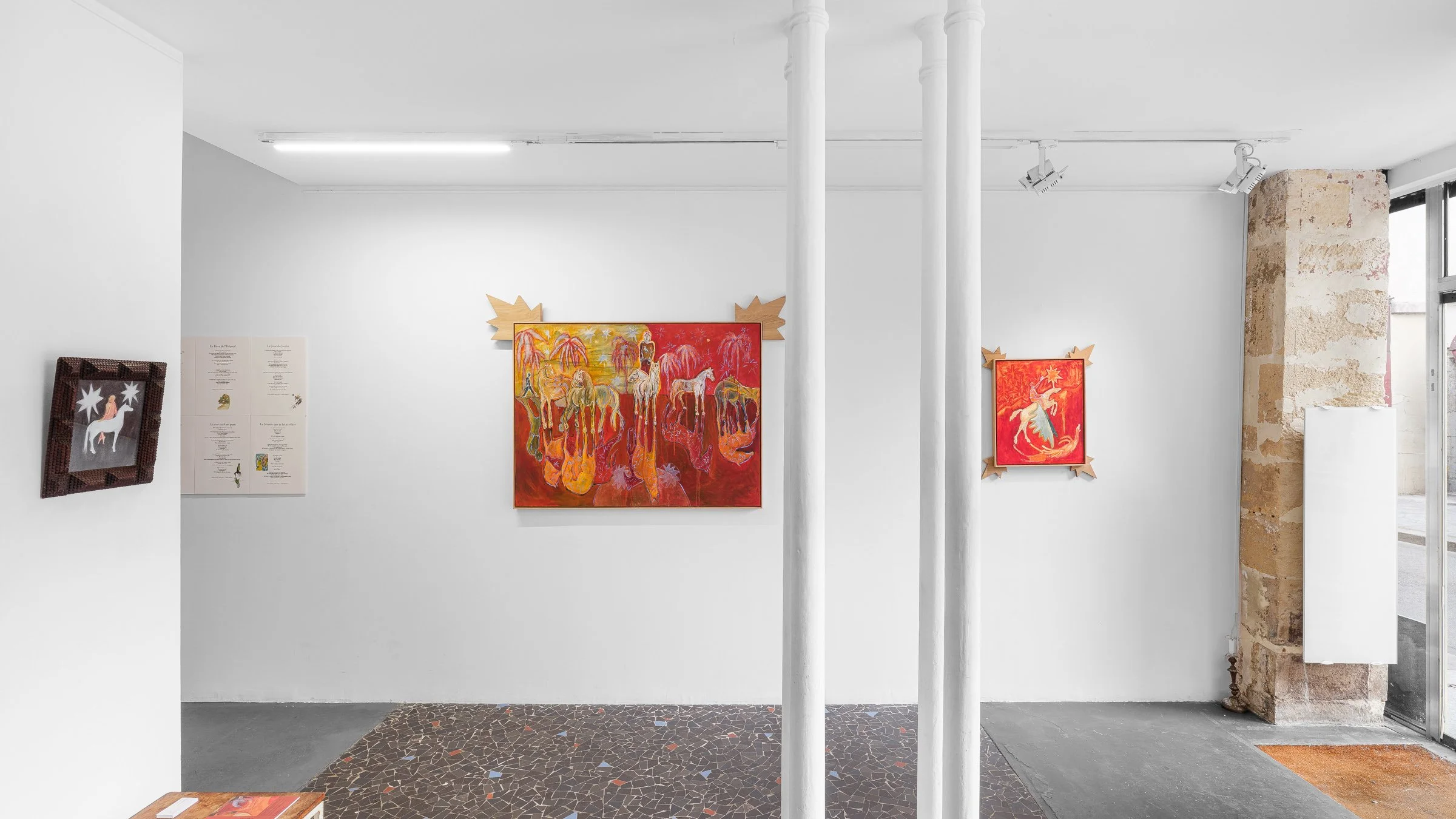 Intégrées à un lieu de vie, ces œuvres s’inscrivent dans une présentation informelle et évolutive, offrant une rencontre spontanée avec le travail de l’artiste.