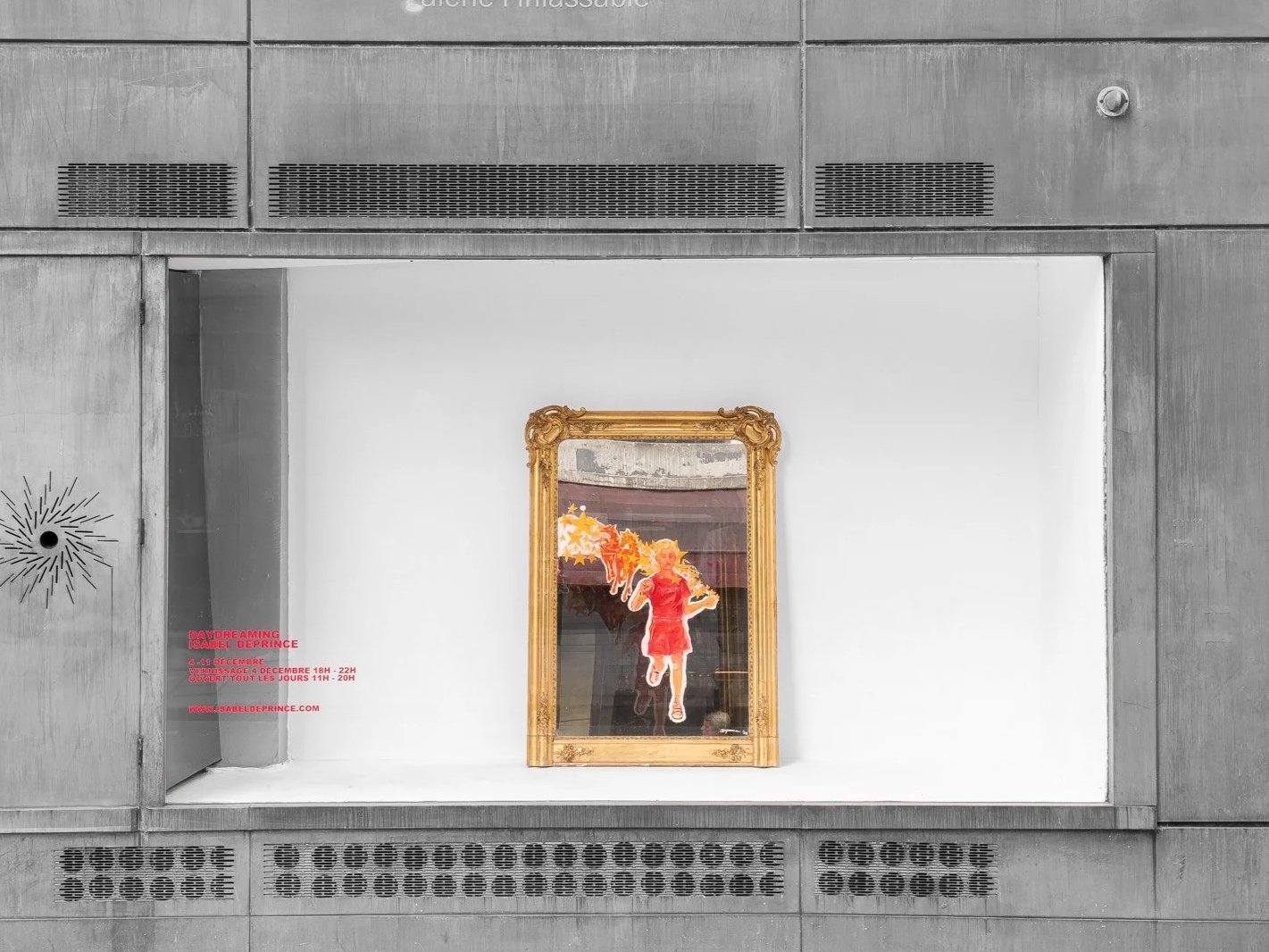 Lors du vernissage, une performance en direct est venue prolonger l’exposition : l’artiste a dessiné sur un miroir, faisant apparaître l’image dans le reflet, entre présence, effacement et mouvement.